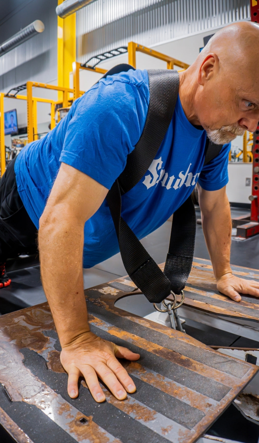 Originally Designed as a replacement for the Pit Shark Push Harness, this harness was beefed up to Spud Inc Standards and is now available to you. It can be used on most belt squat machines for push up variants but you can always set up your own manually or on a cable machine.